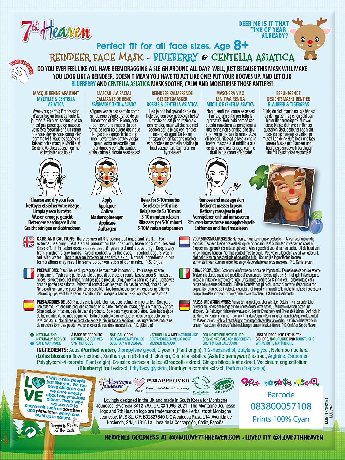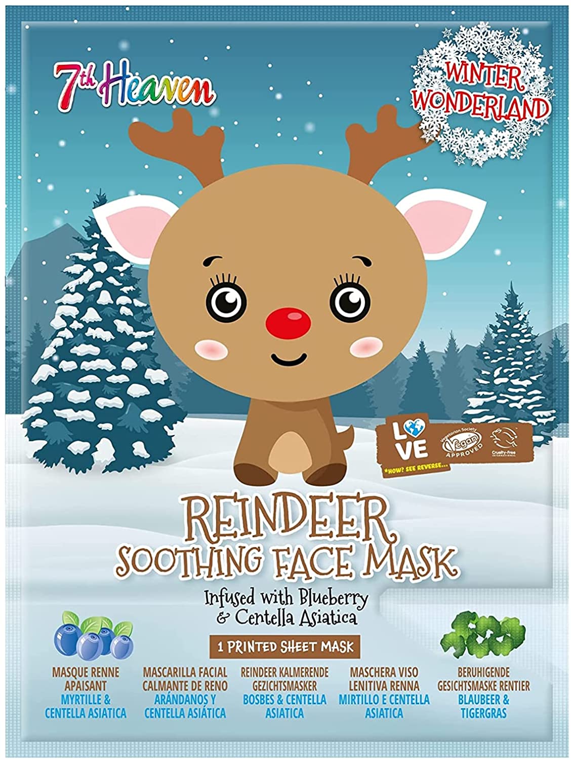 7th Heaven Winter Wonderland Reindeer Facial Sheet Mask Infused with Blueberry and Centella Asiatica