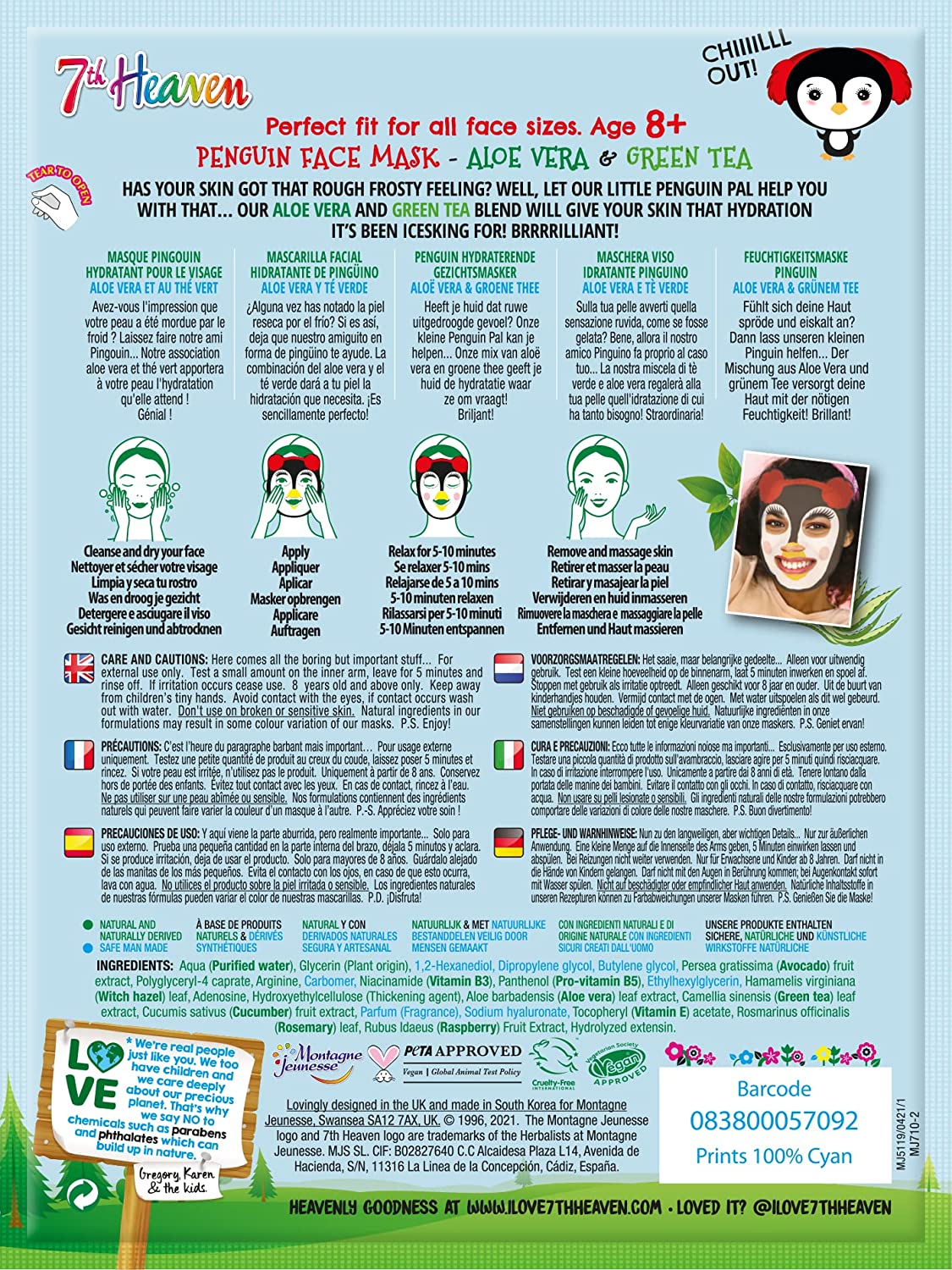 7th Heaven Winter Wonderland Penguin Facial Sheet Mask Infused with Aloe Vera and Green Tea