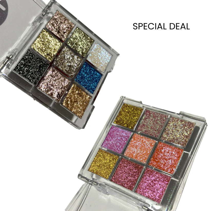 9 creamy pigments with high pigmentation; they are chameleon-like, iridescent, and holographic. The texture like is buttery but not greasy, and you can use them with your fingers