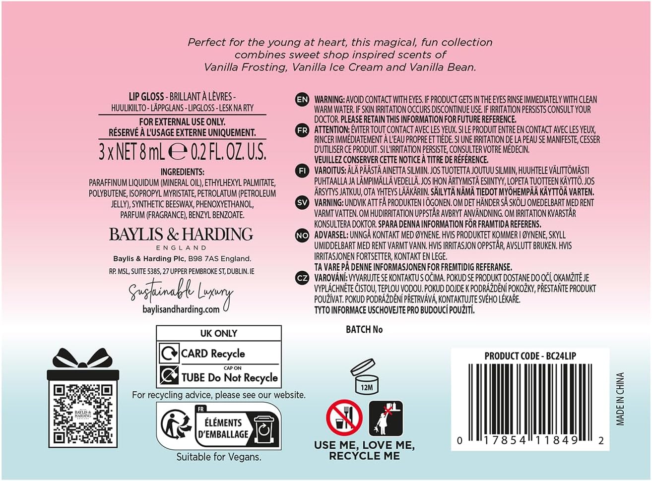 - The candy lip gloss set every girl is dreaming off, contains a trio of 8 ml Lip Gloss